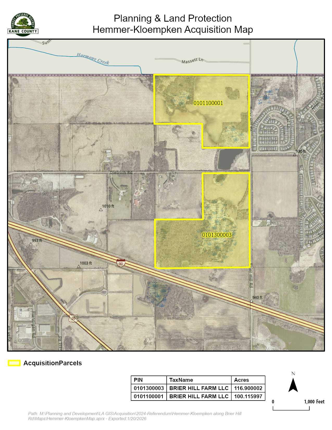 That the Forest Preserve District of Kane County, Illinois, agrees to purchase approximately 220+/- acres for approximately $3,140,000.00 ($14,272.00 per surveyed acre) pursuant to the terms of the Purchase Contract tendered to the District by Seller.